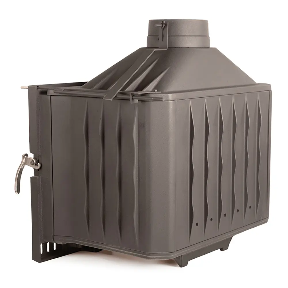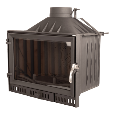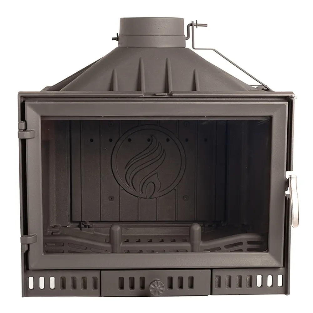 Каминная топка Ilma закрытого типа с верхним подключением к дымоходу изготавливается на российском заводе «FireWay» и пользуется высоким потребительским спросом благодаря высокому качеству, эффективности и удобству в эксплуатации. К тому же производителю удалось предложить покупателям оптимальную цену за действительно долговечный и функциональный отопительный прибор (гарантия составляет 5 лет от даты приобретения). Модель предназначена для отопления помещений объемом до 280 куб.м. Обогрев происходит путем конвекции поступающего через имеющиеся в нижней верхней части топки отверстия и передаваемым теплом через ее чугунные части и панорамное огнеупорное стекло.