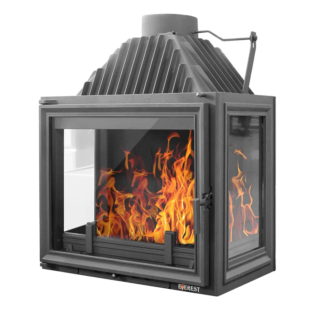 Каминная топка EVEREST A16P: Продвинутая мощность с системой чистого горения. Инновационная инженерная мысль, воплощенная в стали и огне. Для тех, кто требует максимальной эффективности. Каминная топка EVEREST A16P представляет собой вершину инженерной мысли в линейке EVEREST. Созданная для потребителей, ценящих передовые технологии и энергоэффективность, эта модель мощностью 16 кВт оснащена системой пиролитического дожига газов (P-Clean System), что обеспечивает рекордный КПД и минимальное воздействие на окружающую среду. Это выбор для просторных помещений до 170 м³, где важны не только тепло, но и экономия, и экологичность.