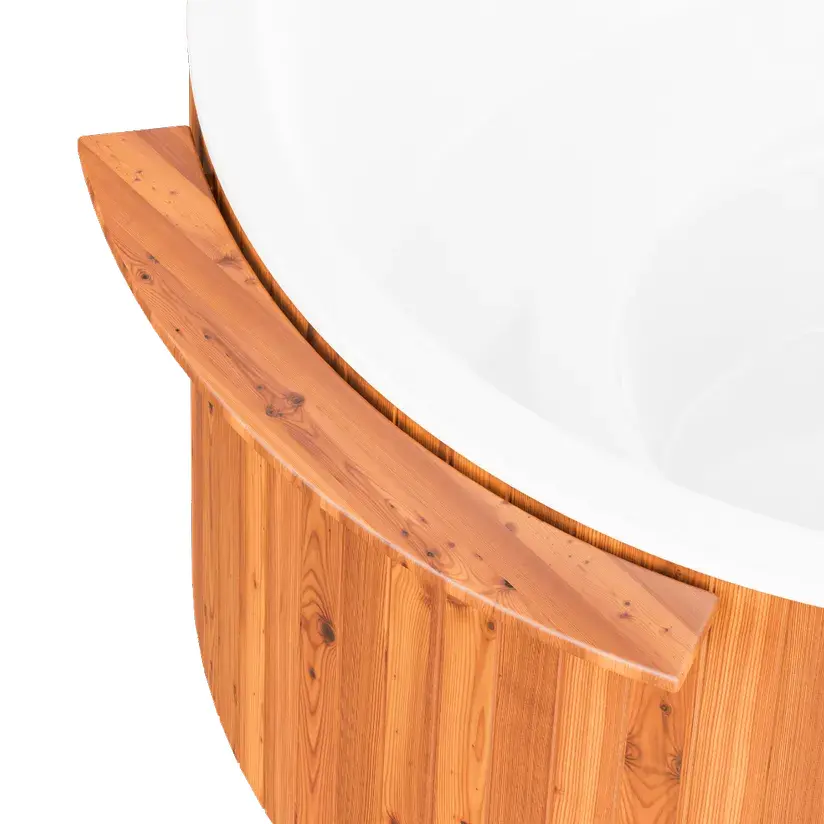 Полка выполнена из термоберёзы. После обработки теплом и паром дерево становится более прочным, не гниет, не покрывается плесенью и отлично держит форму.
