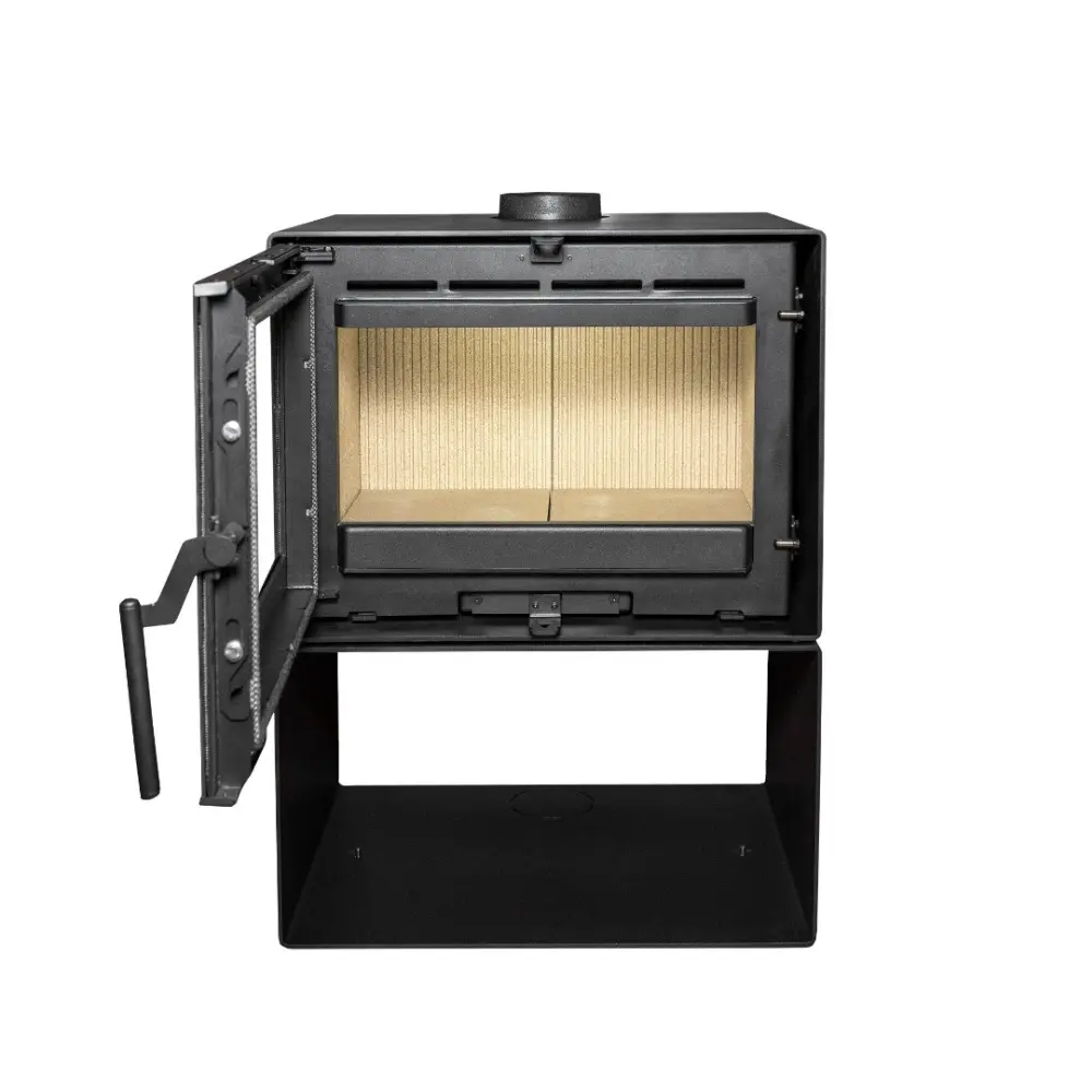 Печь-камин Мета-Бел Монблан 700 представляет собой истинное воплощение роскоши и функциональности. Одним из главных её преимуществ является цельностеклянная передняя часть и широкое остекление, что позволяет наслаждаться великолепным видом на огонь. Масштабное стекло размером 648×465 мм оформлено черным принтом по периметру, добавляя изысканности и элегантности общему дизайну. Топка печи-камина Монблан легко вмещает дрова длиной до 500 мм, что делает её идеальной для использования длинных поленьев. Под топкой предусмотрена удобная ниша, которая может служить дополнительным местом для хранения дров, обеспечивая порядок и доступность топлива.