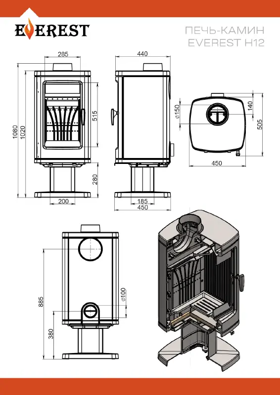 Печь-камин EVEREST Н12 – Идеальное решение для вашего дома. Надежная конструкция для комфортного отопления. EVEREST Н12 – это современная печь-камин, сочетающая в себе функциональность отопительного прибора и эстетику традиционного камина. Благодаря продуманной конструкции и качественным материалам, устройство обеспечивает эффективное отопление помещений площадью до 120 м².