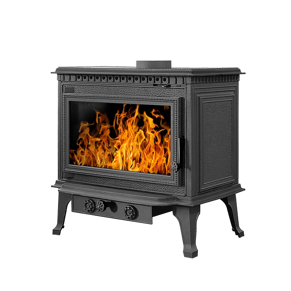 Над дверцей печи-камина расположена система чистое стекло, которая помогает оставаться стеклу чистым. В нижней части под топкой расположены две вращающиеся заслонки для регулировки подачи воздуха в колосниковую зону, которые помогают контролировать интенсивность горения.